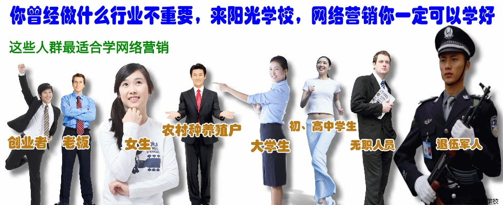 做先知更要做先行。電燈剛剛出現時,沒人覺得它能在世界范圍內得到普遍應用;網絡剛剛出現時,很多人覺得它只是曇花一現……,只有那些敢于天下先、抓住機會、勇于嘗試的人能在時代的發(fā)展中首先覺醒,繼而掌握先機、獲得成功。 隨著網絡影響的進一步擴大,人們對于網絡營銷理解的進一步加深,網絡在人們的日常生活中扮演著越來越重要的角色;越來越多的網絡營銷推廣成功案例,使人們已經開始意識到網絡營銷的諸多優(yōu)點,越來越多的人群和企業(yè)通過網絡進行營銷推廣。湖南陽光電子技術學校成立于1994年,辦學20余年來為社會輸送了大批電腦it人才,湖南陽光電子學校2012年被評為湖南省誠信教育機構聯盟單位,已成為湖南省it技能崗位深造首選,專業(yè) 全 具特色、實力 雄厚的計算機職業(yè)教育機構之一。學員天天實戰(zhàn),一人一機,小班授課。由資深網絡營銷工程師任教。學員畢業(yè)后,學校免費介紹對口專業(yè)的工作。