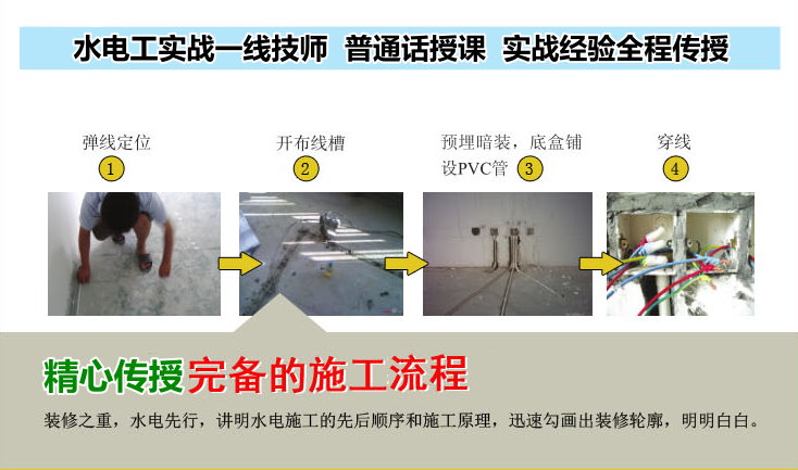 授課方法:每天上午9:00~10:30理論課,由水電工程師授課,教會(huì)學(xué)員識(shí)圖方法和電路分析方法。每天10:30~17:30學(xué)員實(shí)操,自己親自動(dòng)手操作,老師手把手教,傳授現(xiàn)場施工實(shí)踐經(jīng)驗(yàn)和技巧。