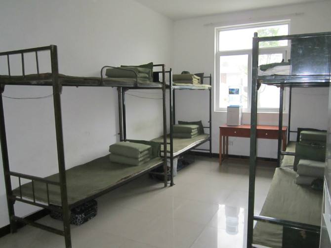 核心提示:學員宿舍是4-6個人每間,屬于上下鋪形式的集體宿舍,宿舍里已經(jīng)安裝了括電風扇等設施。