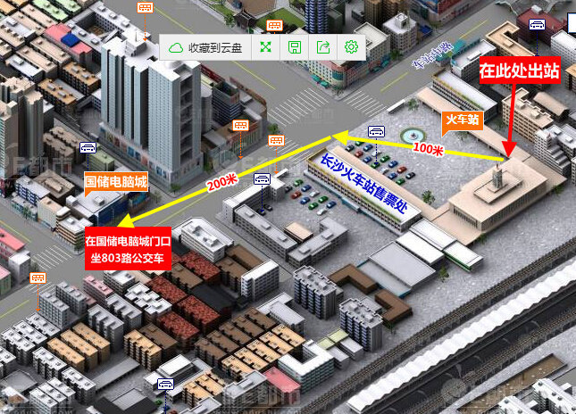 【從長沙火車站出站后,到國儲電腦城門口乘車的示意圖】